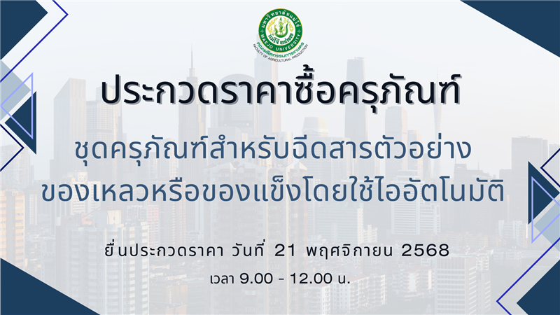 ประกาศเผยแพร่แผนการจัดซื้อจัดจ้าง ประจำปีงบประมาณ พ.ศ. 2569 ชุดครุภัณฑ์ Bioreactor อัจฉริยะ สำหรับเพาะเลี้ยงเนื้อเยื่อที่มีประสิทธิภาพสูงในห้องปฏิบัติการ