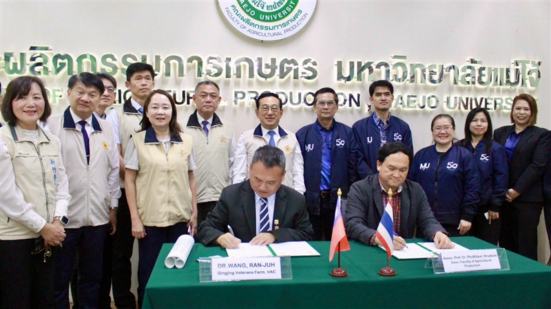 รองศาสตราจารย์ ดร.พุฒิสรรค์ เครือคำ คณบดีคณะผลิตกรรมการเกษตร ได้ให้การต้อนรับ Dr. FU,CHENG-CHENG Deputy Minister of Veterans Affairs Council, TAIWAN เพื่อการหารือร่วมมือความร่วมมือทางวิชาการและวิจัย การแลกเปลี่ยนนักศึกษาฝึกงานต่างประเทศ และได้ร่วมลงนามบันทึกข้อตกลงความร่วมมือทางวิชาการกับ Dr. WANG,RAN-JUH Director of Qingjing Veterans Farm, VAC เพื่อส่งนักศึกษาคณะผลิตกรรมการเกษตรเข้าร่วมฝึกงานสหกิจศึกษาต่างประเทศ ณ Qinging Veterans Farm, VAC TAIWAN เมื่อวันที่ 12 ธันวาคม 2568 ณ ห้องประชุม 1 ชั้น 2 อาคารรัตนโกสินทร์ 200 ปี