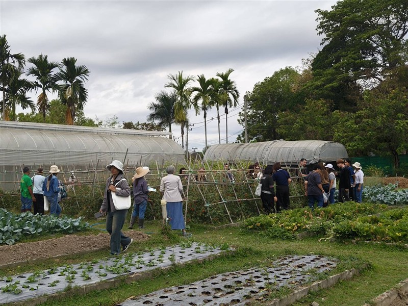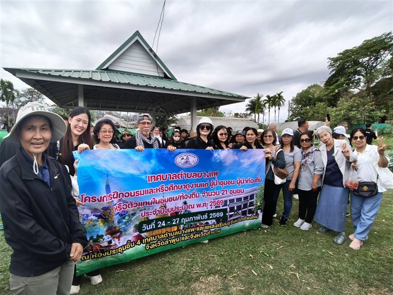 วันที่ 25 กุมภาพันธ์ 2569 เทศบาลตำบลบางแพ จังหวัดราชบุรี ได้จัดโครงการฝึกอบรม และศึกษาดูงาน ให้แก่ผู้นำชุมชน ผู้นำท้องถิ่น และตัวแทนในชุมชนจำนวน 21 ชุมชน ประจำปีงบประมาณ พ.ศ 2569 เพื่อศึกษาแนวทางการพัฒนาเกษตรอินทรีย์มูลค่าสูง และการจัดการตลาดผลิตภัณฑ์ชุมชน เพื่อนำมาสร้างรายได้และส่งเสริมเศรษฐกิจ ได้นำคณะผู้เข้ารับการฝึกอบรม จำนวน 135 คน เข้าศึกษาดูงาน เรื่อง การพัฒนาเกษตรอินทรีย์มูลค่าสูง โดยมีอาจารย์ ดร.แสงเดือน อินชนบท เป็นวิทยากรบรรยาย ณ สาขาพืชผัก คณะผลิตกรรมการเกษตร พร้อมด้วยเจ้าหน้าที่งานบริการวิชาการและวิจัยให้การต้อนรับ