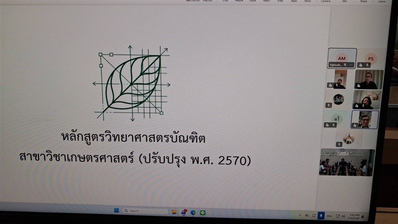 ผู้ช่วยศาสตราจารย์ ดร.ปัทมา หาญนอก เป็นประธานคณะกรรมการวิพากษ์หลักสูตรระดับปริญญาตรี สาขาวิชาเกษตรศาสตร์ ได้ดำเนินการประชุมเพื่อวิพากษ์หลักสูตรฯ เพื่อการพัฒนาหลักสูตรให้มีคุณภาพและมาตรฐานของสาขาวิชา สอดคล้องกับปรัชญาการศึกษา วิสัยทัศน์ และทิศทางการผลิตบัณฑิตของมหาวิทยาลัย รวมทั้งความต้องการ ของประเทศ และเป็นไปตามเกณฑ์มาตรฐานหลักสูตรระดับปริญญาตรี พ.ศ.2565 ของกระทรวงการอุดมศึกษา วิทยาศาสตร์ วิจัย และนวัตกรรม เมื่อวันที่ 3 เมษายน 2569 เวลา 13.00 น. ณ ห้องประชุม 1 ชั้น 2 อาคารรัตนโกสินทร์ 200 ปี